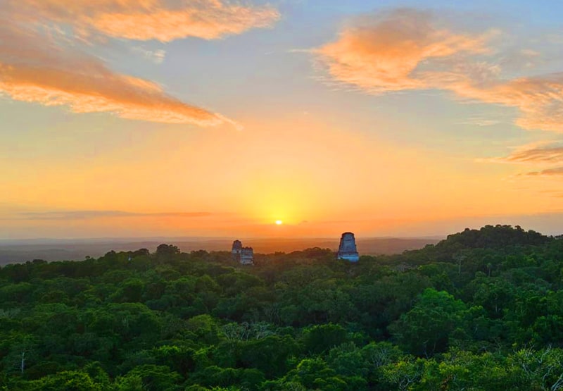 Iniciaremos esta aventura aproximadamente a las 3:00 a.m., momento en que la jungla comienza a susurrar y el aire se siente cargado de misterio. Te trasladaremos por carretera hasta la entrada de Tikal. La emoción crecerá mientras avanzas en la penumbra rumbo al Templo IV, donde aguardaremos el espectáculo natural del amanecer sobre la selva.